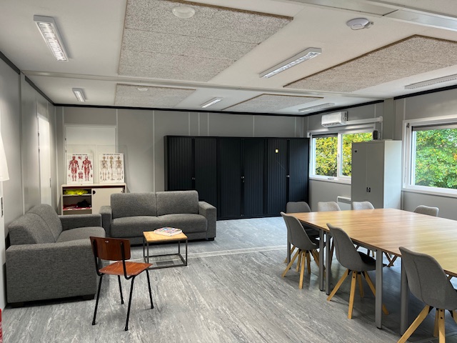 Het tijdelijk schoolgebouw staat op zijn plek. De komende weken zullen er in en rond het gebouw werkzaamheden plaatsvinden. Water, internet, electra, riolering, terreininrichting etc.